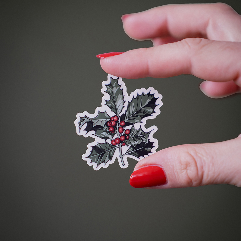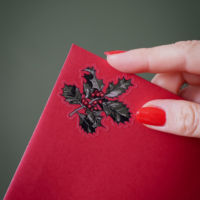 Un sticker houx pour une touche traditionnelle et chaleureuse dans vos créations de Noël.